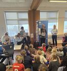 Á mánudaginn kom breski sendiherrann á Íslandi dr Bryony Mathew ásamt tveimur starfsmönnum sendiráðsis í heimsókn til nemenda í 3. og 4. bekk og gaf þeim bók um framtíðarstörf ásamt spili . Dr Bryony Mathew samdi bókina sem heitir Tæknitröll og íseldfjöll, frábær störf framtíðarinnar. Hún ræddi við börnin um öll þau spennandi störf sem yrðu til í framtíðinni og við myndum ekki þekkja enn sem komið er.