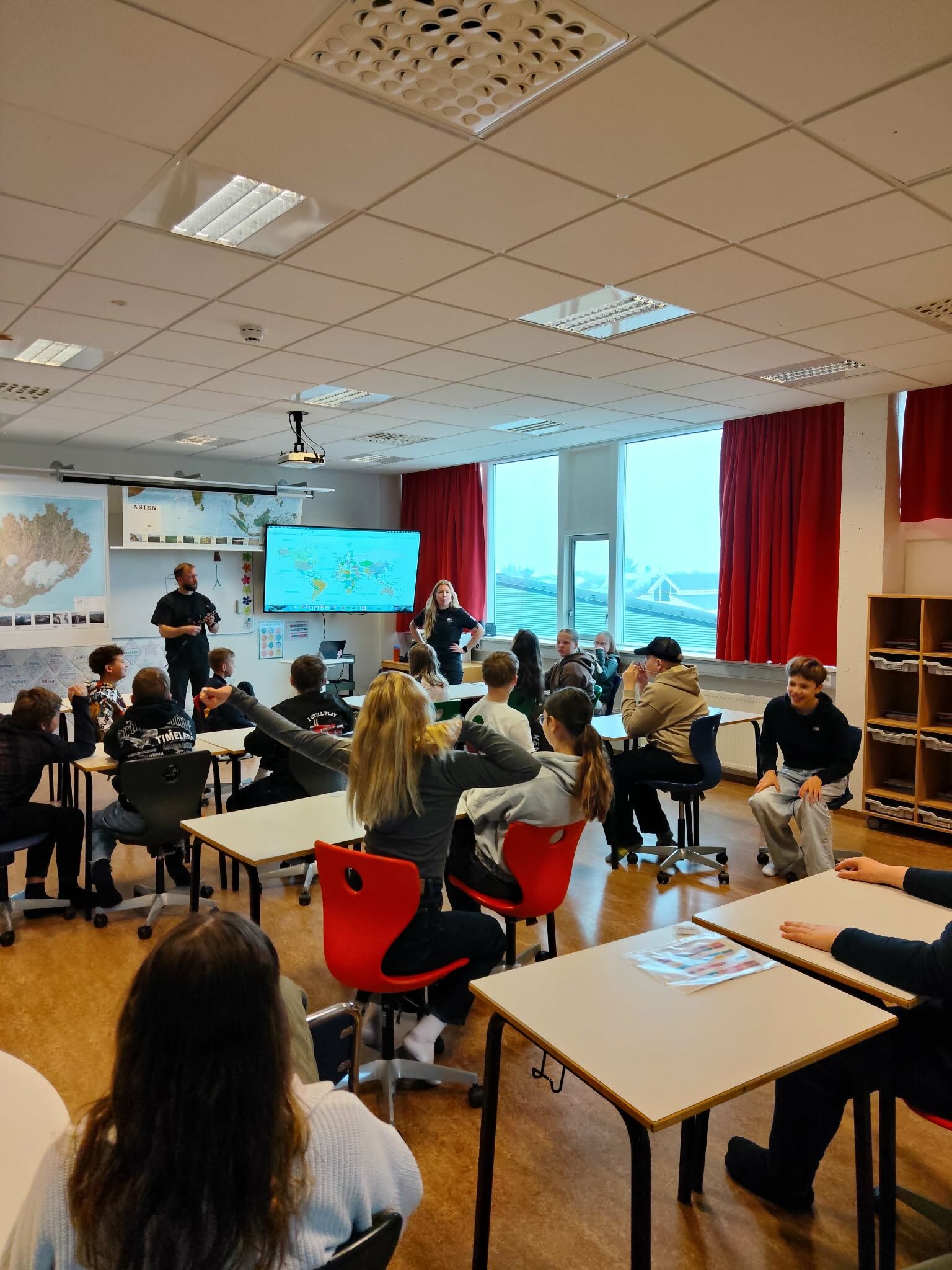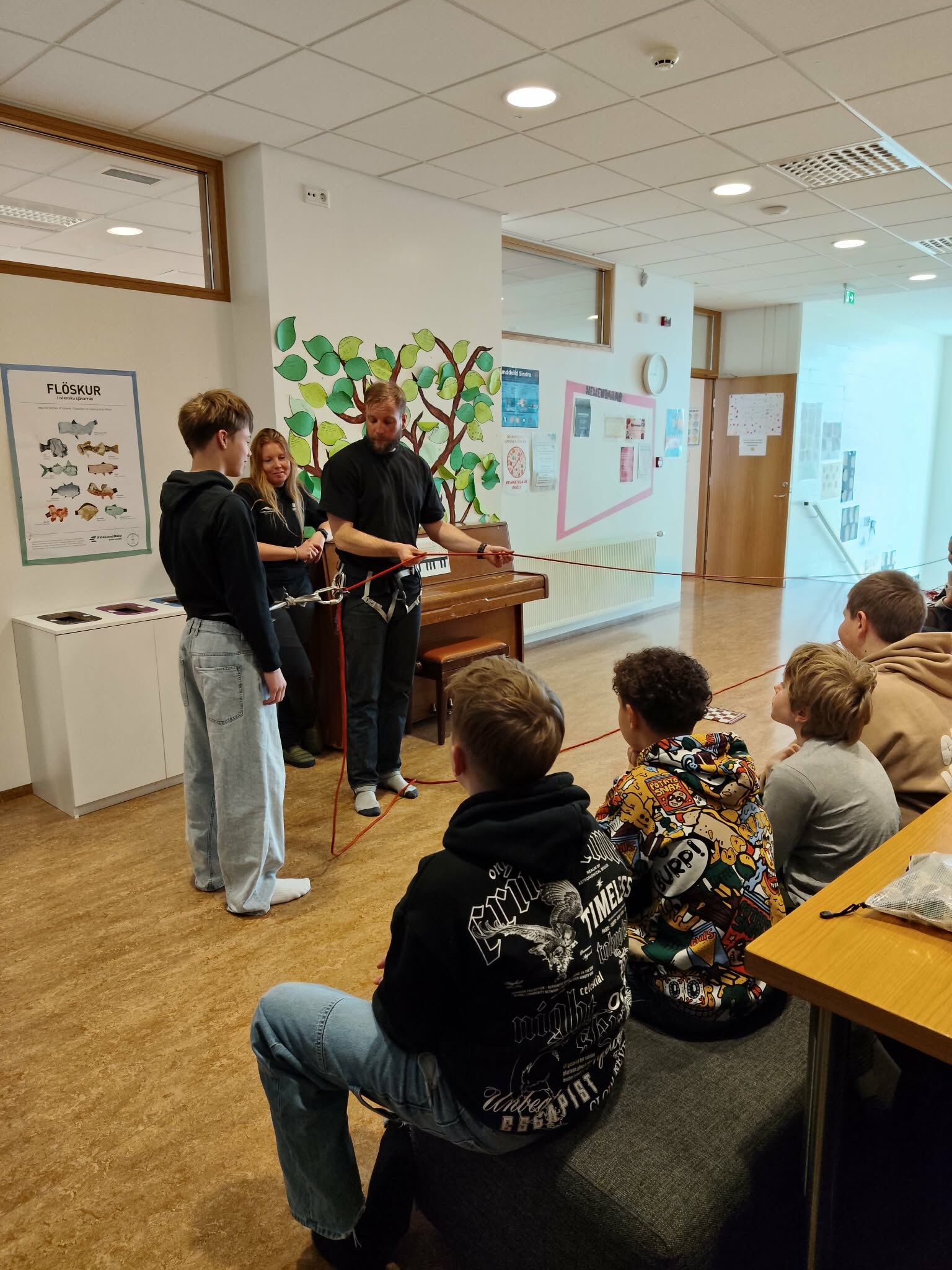 Næstu vikurnar munu 7. bekkingar læra um jökla í náttúrufræði. Í tilefni þess komu Súsanna og Erik, landverðir frá Vatnajökulsþjóðgarði, í heimsókn. Þau fræddu krakkana um Vatnajökul og sýndu þeim búnað sem notaður er á jöklum. Einnig fór fram sýniskennsla í sprungubjörgun. Við þökkum þeim kærlega fyrir komuna.