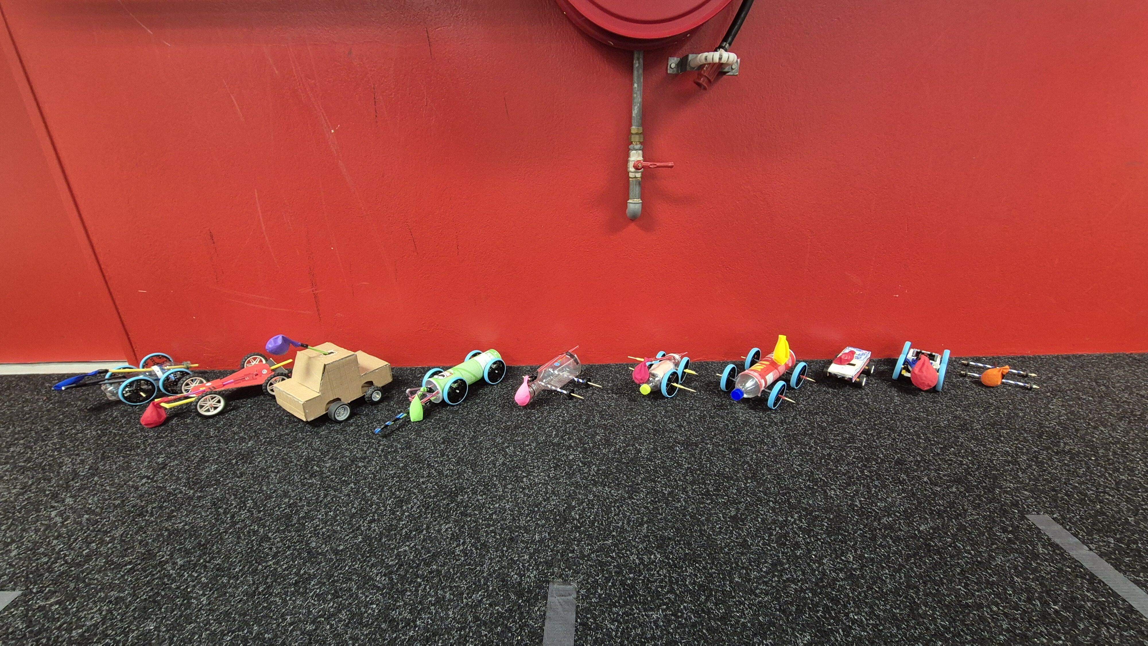 Lokaspretturinn í eðlisfræðinámi skólaársins hjá 9. bekk í náttúrufræði var einkar skemmtilegur. Bækurnar fengu að víkja og öll orka var lögð í að hanna og smíða blöðrubíla. Verkefnið snerist um samvinnu og að átta sig á hvernig best væri að beita þekkingu sinni og leikni í að hanna blöðrubíla. Krakkarnir voru áhugasamir og einbeittir í þessu verkefni. Þau hlustuðu á hugmyndir hvers annars, teiknuðu upp og byggðu hinar ýmsu útgáfur af blöðrubílum eins og sést á meðfylgjandi mynd. Keppnisdagur rann upp fimmtudaginn 5. mars og fengum við til okkar góða gesti meðal annars óskuðu nemendur eftir að fá bæjarstjórann sjálfan Sigurjón Andrésson sem dómara. Þau sjálf settu reglur og viðmið fyrir kappaksturinn, ásamt því að ákveða í hvaða flokkum yrðu veitt verðlaun en þau voru eftirfarandi: