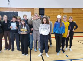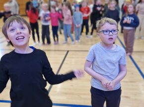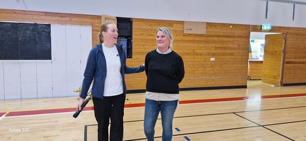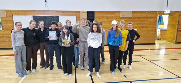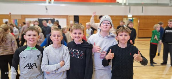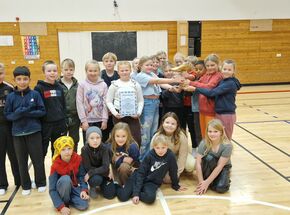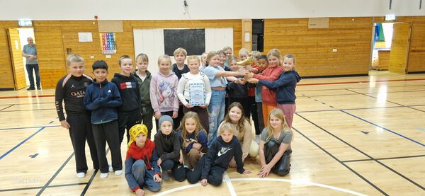 Í dag var haldinn einskonar uppskeruhátíð í íþróttahúsinu vegna "Göngum í skólann" verkefnisins. Hátíðin hófst á þvi að sunginn var afmælissöngur fyrir Önnu Björgu því næst var verðlaunaafhending. Að þessu sinni voru tveir bekkir jafnir en það voru 4. bekkur (2016) og 8. bekkur (2012). Þess má geta að þetta er ekki í fyrsta sinn sem 2012 árgangurinn vinnur þessa keppni.