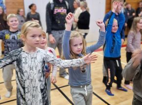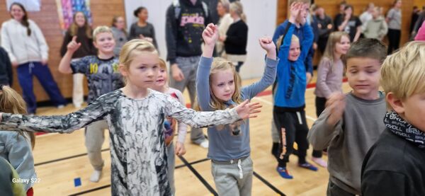 Hátíðinni lauk með "Just dance" en það er alltaf mikið fjörð þegar allir bekkir grunnskólans hittast og dansa.