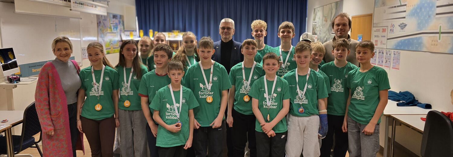Miðvikudaginn 19.nóvember kom Guðmundur Ingi Kristinsson mennta- og barnamálaráðherra í heimsókn í Grunnskóla Hornafjarðar.Hann hitti nemendur í LEGO smiðjunni sem nýverið sigruðu First Lego League keppnina í Háskólabíó í byrjun nóvember. Grunnskólinn sendi 2 lið í keppnina og urðu þau í 1. og 2.sæti í keppninni.Guðmundur Ingi skoðaði einnig húsnæði skólans og fékk upplýsingar um helstu stefnur skólans ásamt því að fræðamst um árshátíðina og lokaverkefni 10.bekkjar. Við þökkum mennta- og barnamálaráðherra kærlega fyrir heimsóknina og vonum að hann hafi átt góðan dag hér í firðinum fagra.