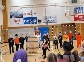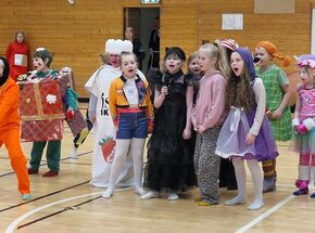 Á öskudaginn er hefðin sú hjá yngsta og miðstigi að hittast í íþróttahúsinu, horfa á hæfileikakeppni, slá köttinn úr tunnunni, dansa og veita verðlaun fyrir hæfileikakeppnina og besta og frumlegasta búininginn. Friðrik Jarl í 5. bekk fékk verðlaun fyrir flottasta atriðið í hæfileikakeppninni og stelpur í 4. bekk fyrir frumlegasta atriðið. Helena Draumey í 5. bekk fékk verðlaun fyrir frumlegasta búninginn, Sigurbjörn Ívar í 6. bekk fyrir flottasta búningin, Auður, Nanna og Freyja fyrir skemmtilegasta hópbúninginn og Guðjón fyrir flottasta kennarabúninginn.